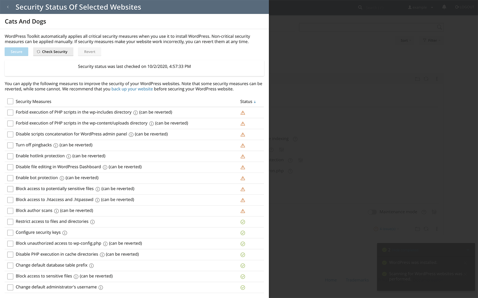 WP Toolkit Deluxe delivers powerful WordPress plugin & theme management, security hardening, automation, cloning, and backup/restores all from a single user-friendly dashboard.